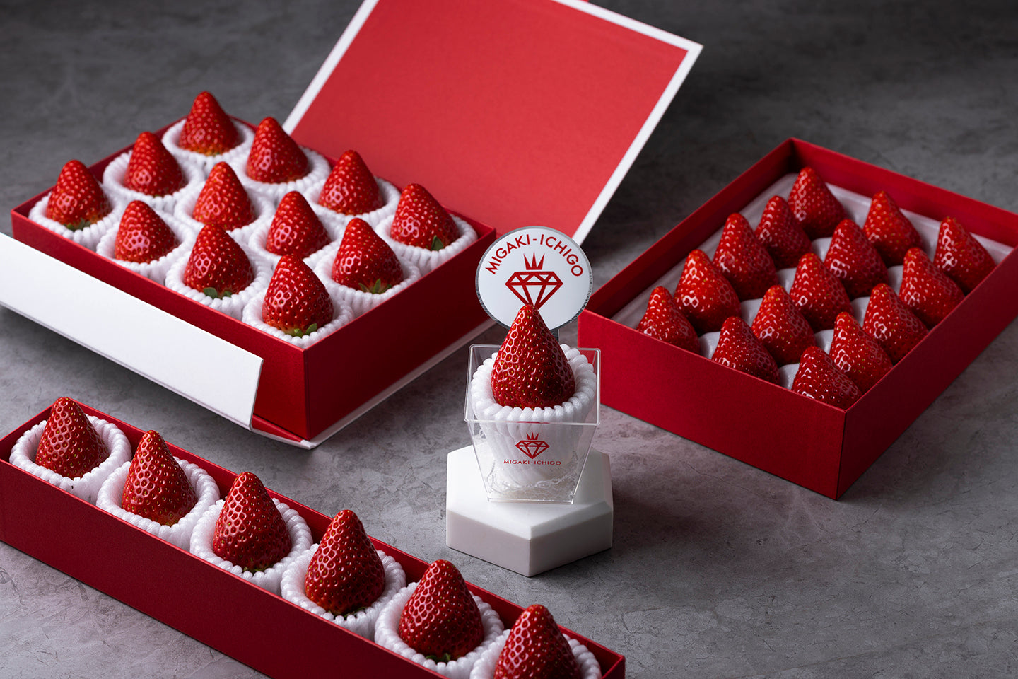 東日本大震災で大きな被害を受けた山元町のいちご産業復興への強い想いと情熱から誕生しました。「食べる宝石」をコンセプトに、熟練のいちご農家の経験と、徹底した品質管理によって一粒一粒を丁寧に磨き上げた、特別なブランドいちごです。